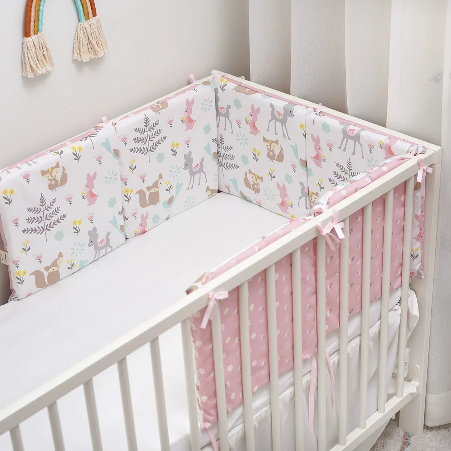 - 🌈 Confort et stimulation sensorielle : En tant qu'élément décoratif, le tour de lit stimule les sens de votre bébé et apporte une présence rassurante et constante dans son lit.